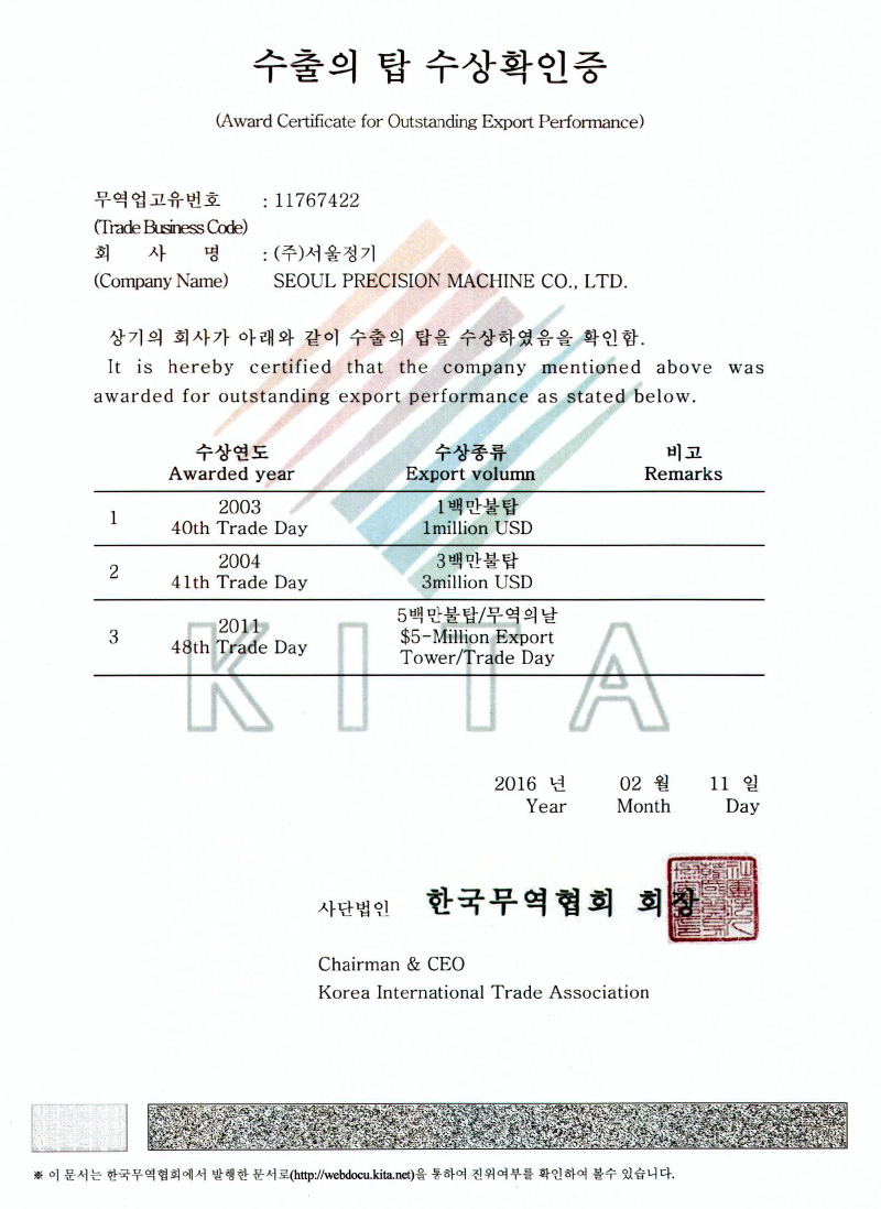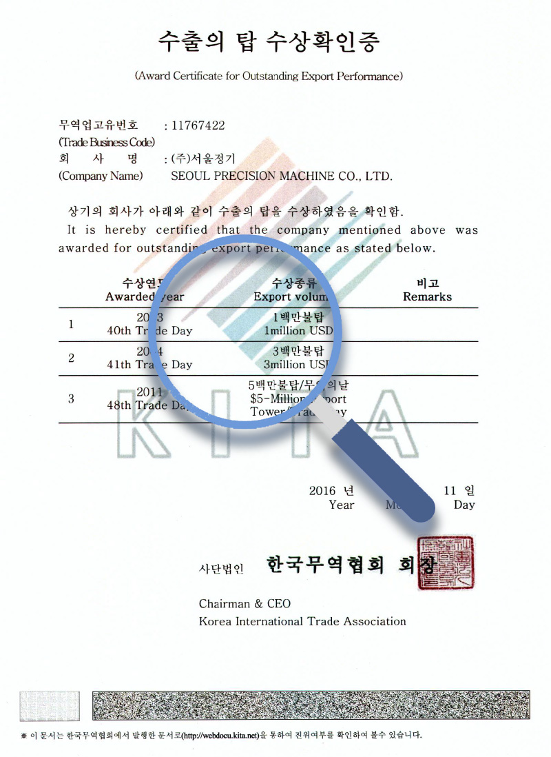 Export Tower Award Certificate