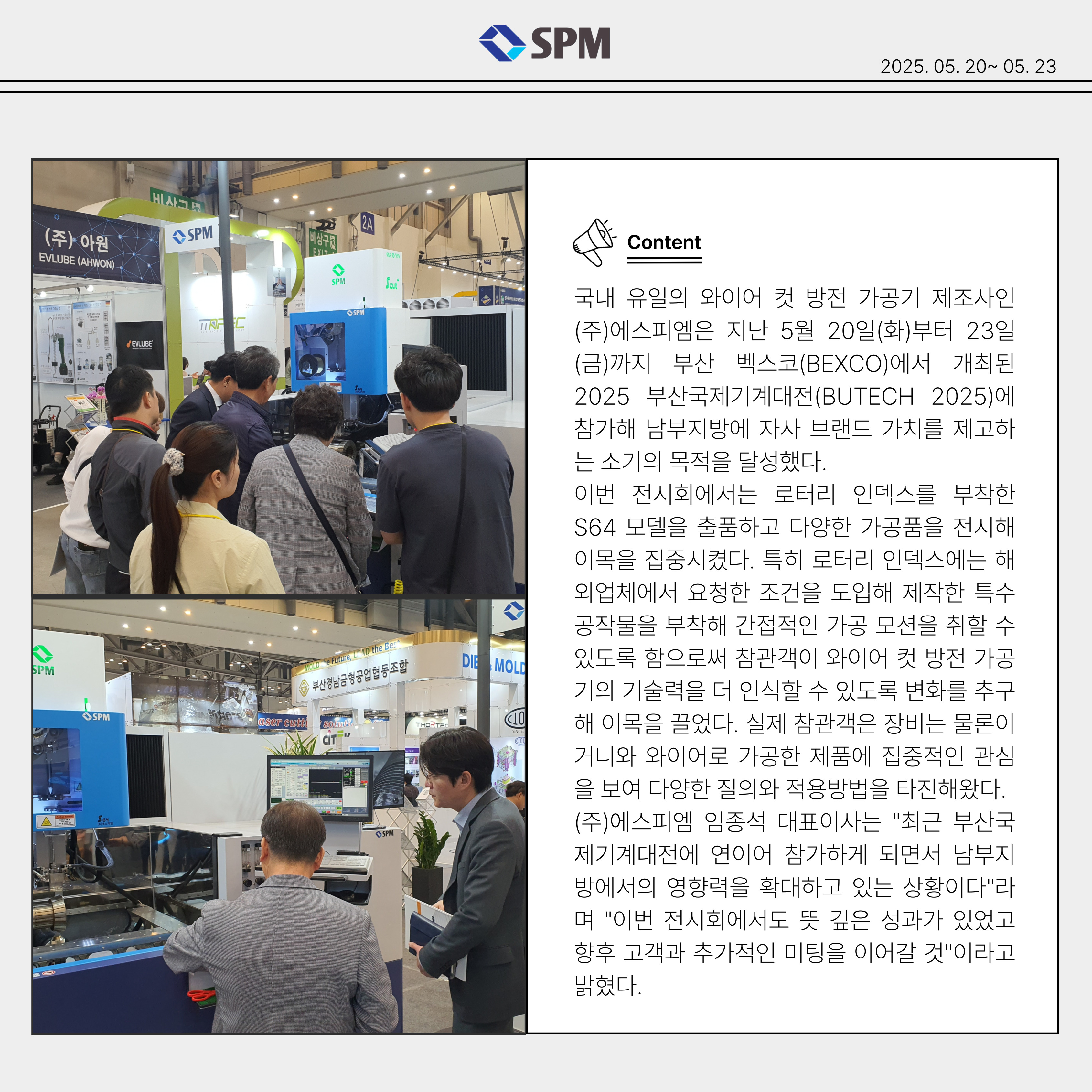 ±¹³» À¯ÀÏÀÇ ¿ÍÀ̾î ÄÆ ¹æÀü °¡°ø±â Á¦Á¶»çÀÎ (ÁÖ)¿¡½ºÇÇ¿¥Àº Áö³ 5¿ù 20ÀÏ(È)ºÎÅÍ 23ÀÏ(±Ý)±îÁö ºÎ»ê º¤½ºÄÚ(BEXCO)¿¡¼ °³ÃÖµÈ 2025 ºÎ»ê±¹Á¦±â°è´ëÀü(BUTECH 2025)¿¡ Âü°¡ÇØ ³²ºÎÁö¹æ¿¡ ÀÚ»ç ºê·£µå °¡Ä¡¸¦ Á¦°íÇÏ´Â ¼Ò±âÀÇ ¸ñÀûÀ» ´Þ¼ºÇß´Ù.