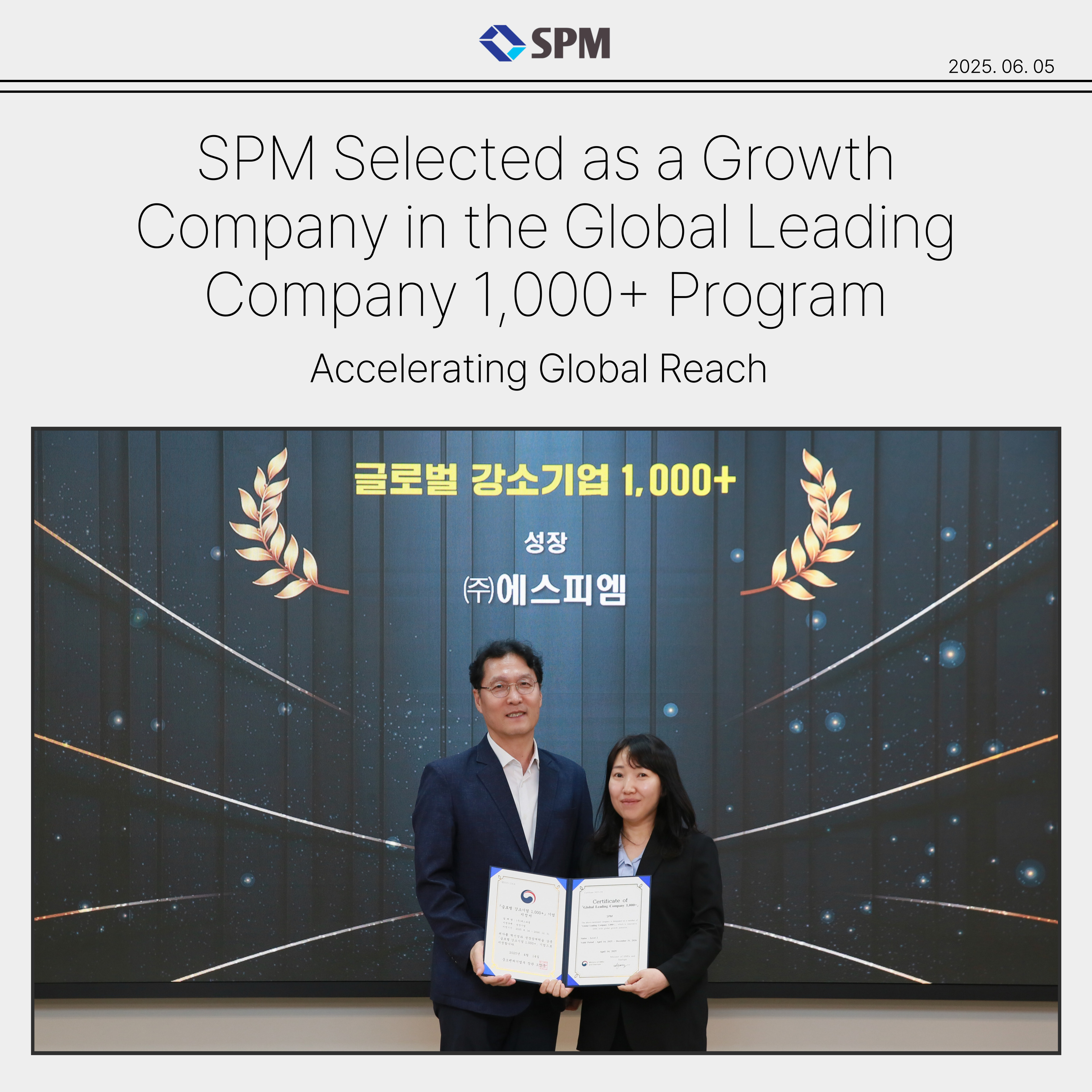 SPM Co., Ltd., Korea¡¯s only domestic manufacturer of wire-cut EDM equipment, has been officially selected as a ¡®Growth Company¡¯ under the Global Leading Company 1,000+ initiative by the Ministry of..